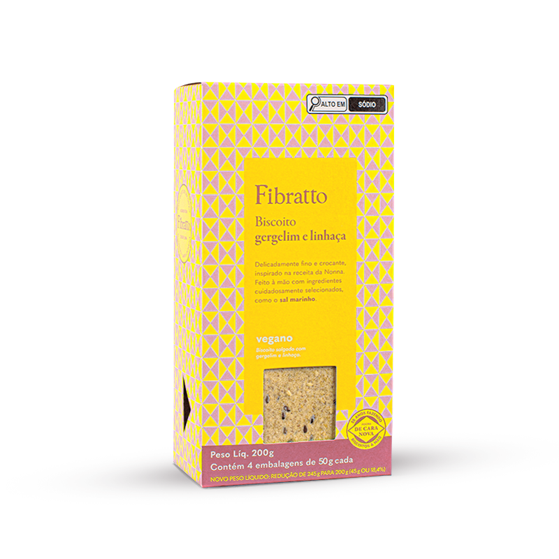 INGREDIENTES: Farinha de trigo enriquecida com ferro e ácido fólico, farinha de trigo integral, gergelim, linhaça marrom, óleo de soja, sal marinho, fibra de trigo, fermento químico bicarbonato de sódio e antioxidante extrato natural de alecrim.