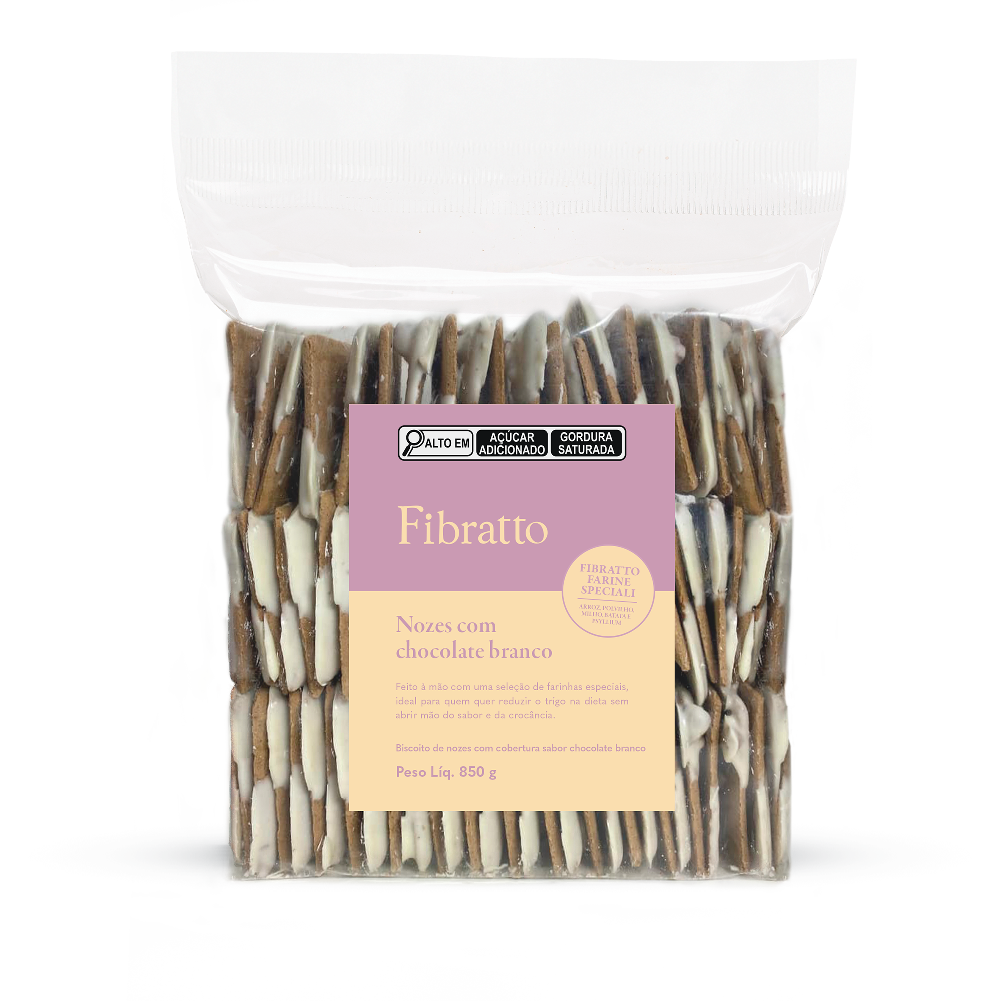 INGREDIENTES: Farinha de arroz, açúcar mascavo, manteiga, polvilho doce, farinha de milho, fécula de batata, amido de milho, psyllium, canela, ovo integral em pó, cravo, noz moscada, cardamomo, emulsificante goma xantana, fermento químico bicarbonato de sódio, e antioxidante extrato natural de alecrim. Cobertura sabor chocolate branco (açúcar, gordura vegetal, leite integral, leite desnatado, emulsificantes: lecitina de soja e ésteres de ácido ricinoléico interester ificado com poliglicerol e aromatizante) e noz pecan.