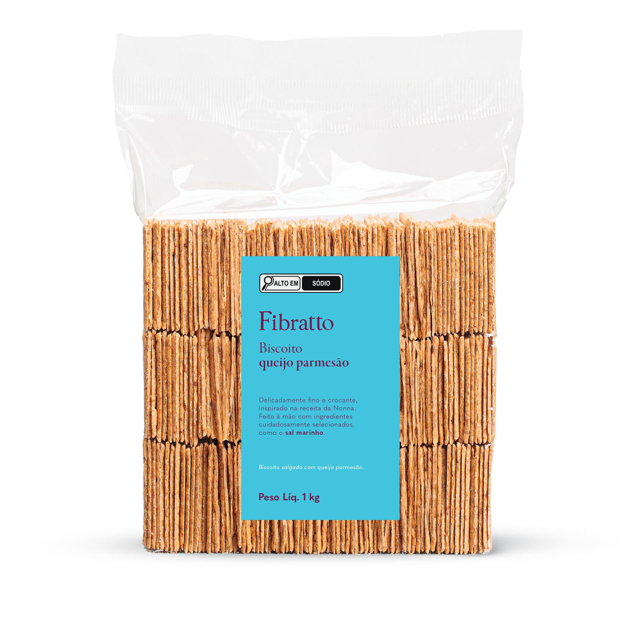 INGREDIENTES: Farinha de trigo enriquecida com ferro e ácido fólico, farinha de trigo integral, queijo parmesão, óleo de soja, sal marinho, fibra de trigo, fermento químico bicarbonato de sódio e antioxidante extrato natural de alecrim.