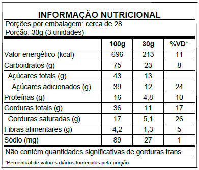 ALÉRGICOS: CONTÉM PISTACHE, OVO, DERIVADOS DE TRIGO, DE LEITE E DE SOJA. PODE CONTER CENTEIO, CEVADA, AVEIA, TRITICALE, CASTANHA DE CAJU, CASTANHA DO PARÁ, AVELÃ, AMÊNDOAS, NOZES, AMENDOIM E GERGELIM.
